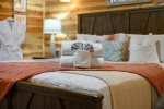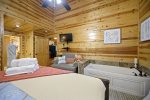 In the living room there is 50" HD flat screen smart television with free Netflix, Sling TV, and comfortable seating, all nestled around a gorgeous, easy start electric fireplace, perfect for curling up with a good book or your favorite show. As the evening wears on, you might find yourself ready to hit the hay. A showplace of luxurious proportions and pampering touches makes the bedroom a destination unto itself. A corner Jacuzzi tub might be the first thing to catch your eye, but you will be hard pressed to resist the gravitational pull of the sumptuous king-sized bed with a pillow-top mattress, topped with soft 100% cotton linens. When you finally give in to the bed's delicious comforts, there is a 32" HD smart television with free Netflix and Sling TV to keep the good shows rolling. The bathroom is well equipped to handle your daily routine with His & Hers sinks, each with their own lighting, as well as a large walk-in shower and jetted tub. Shear Comfort is also well prepared for long term guests with its own washer and dryer.