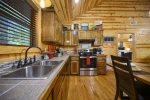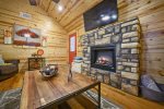 Once you step foot inside Shear Pleasure you will be spoiled for all else. The full height vaulted ceilings, lodge-like wood floors and walls, light filled open concept and first-class furnishings are some of the features likely to grab your initial attention before gravitating to the gorgeous full kitchen, statement-making fireplace and ambient mood lighting provided from the modern light fixtures. In the living room there is an easy-start electric fireplace for cozy nights as well as ambiance, 50" HD flat screen smart television with free Netflix and Sling TV, sleeper sofa and comfortable reclining leather chair. Providing interest from every angle, the kitchen is a stunner rendered in modern, rustic cabinets, equipped with every appliance including automatic dishwasher to assure terrific gourmet convenience. Within easy reach is the four-person dining table, large enough for banquets as well as setting up with a favorite jigsaw puzzle or board game.