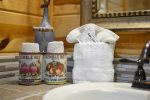 1-2 Bedroom cabins will be supplied with: 2 Laundry pods, 2 Dishwasher pods, 1 Hand Soap, 2 rolls toilet paper per bathroom (1 on holder and 1 under sink/drawer) , 1 Paper Towel (under kitchen sink), 4 Trash bags (under kitchen sink), 1 Travel Sized Shampoo per bathroom, 1 Bar Soap per bathroom.